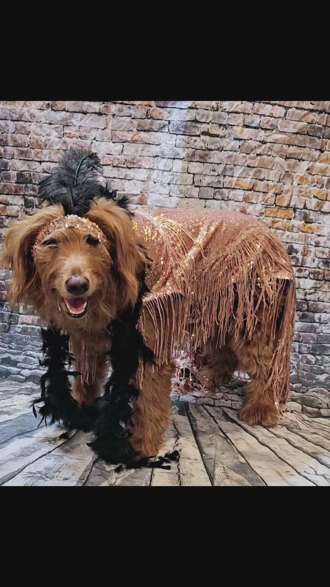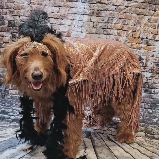 Flappers sequin pet costume, flappers fringe pet costume, flapper girl pet costume