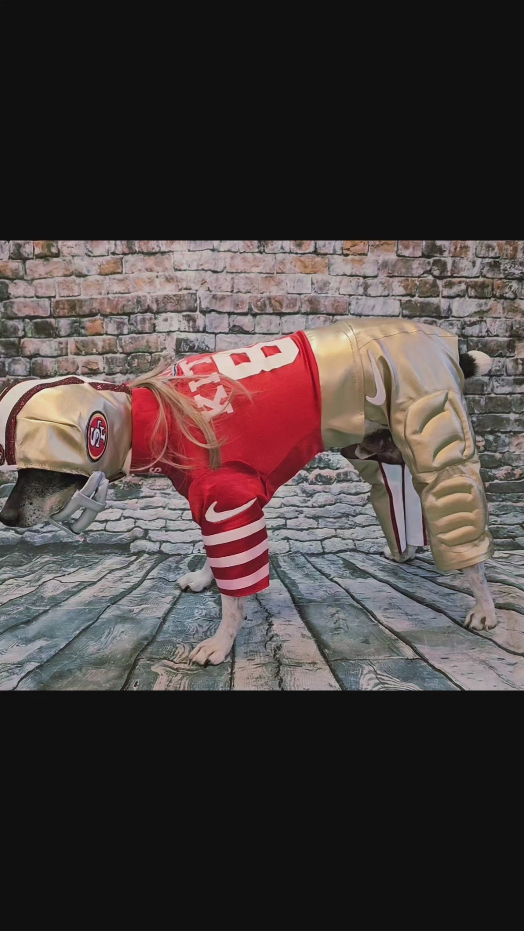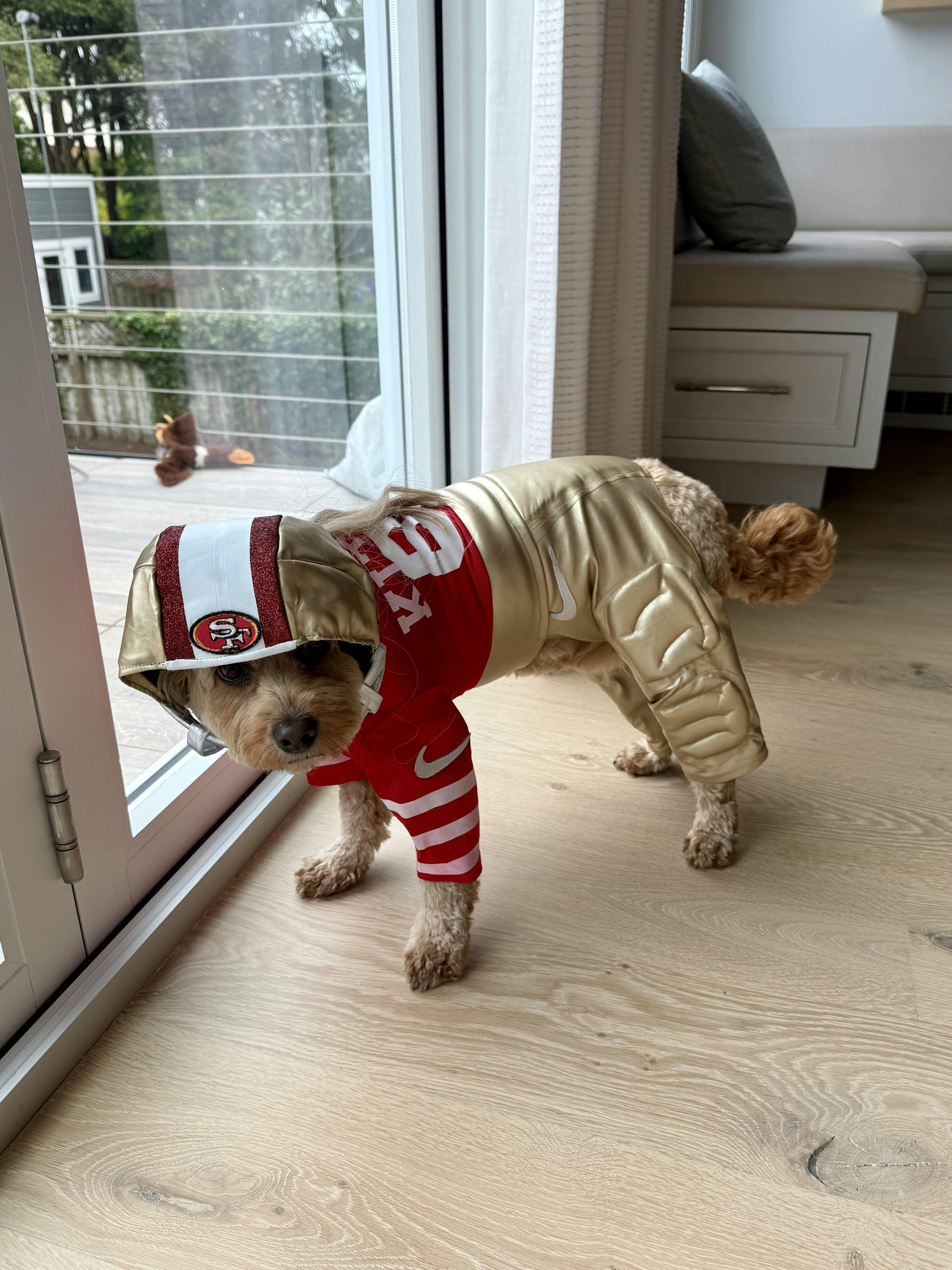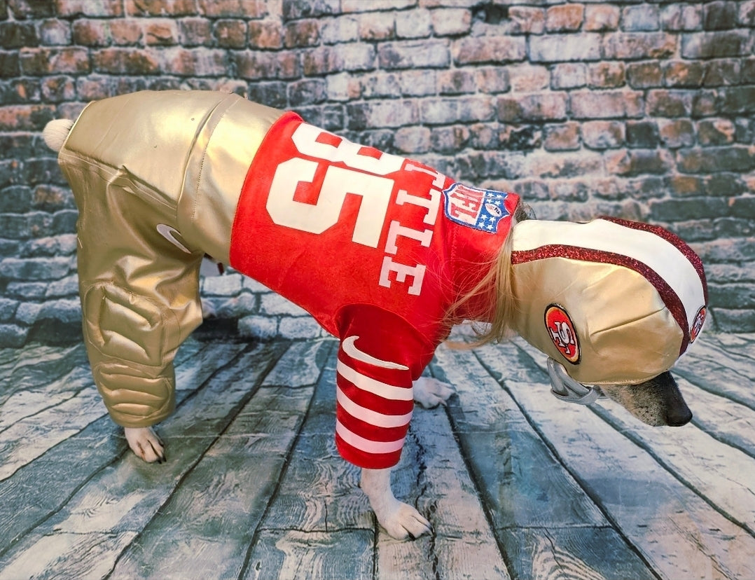 George Kittle pet costume, 49ers pet costume, football uniform pet costume