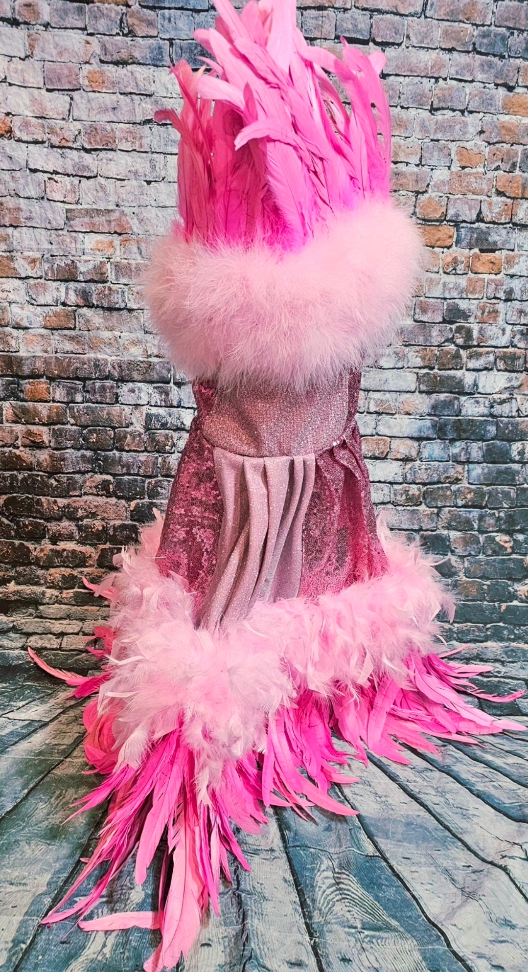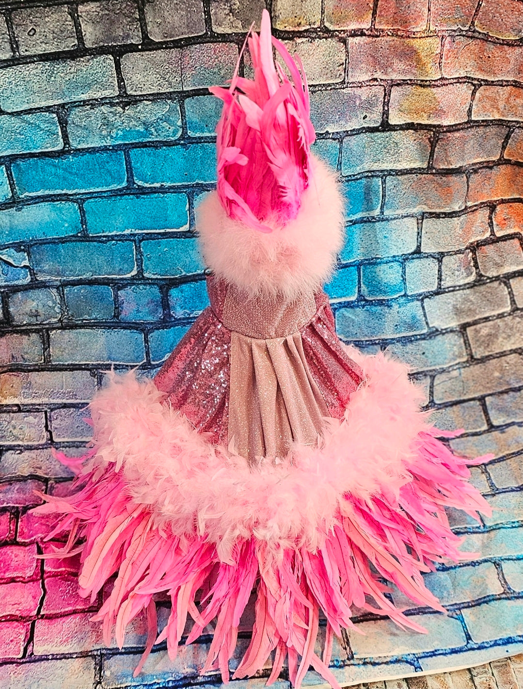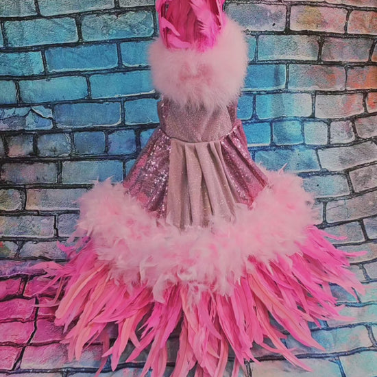Couture feather sequin pet dress, Gala Pet Costume, Pink feather pet dress