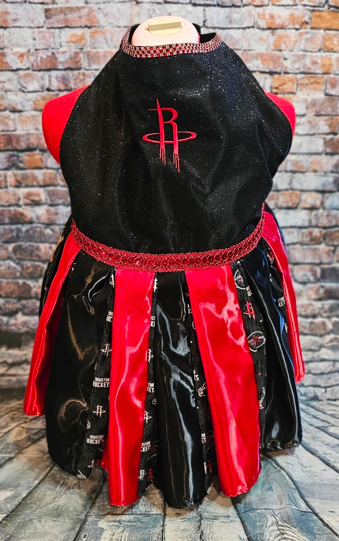 Houston Rockets glitter pet dress, rockets embroidered pet dress