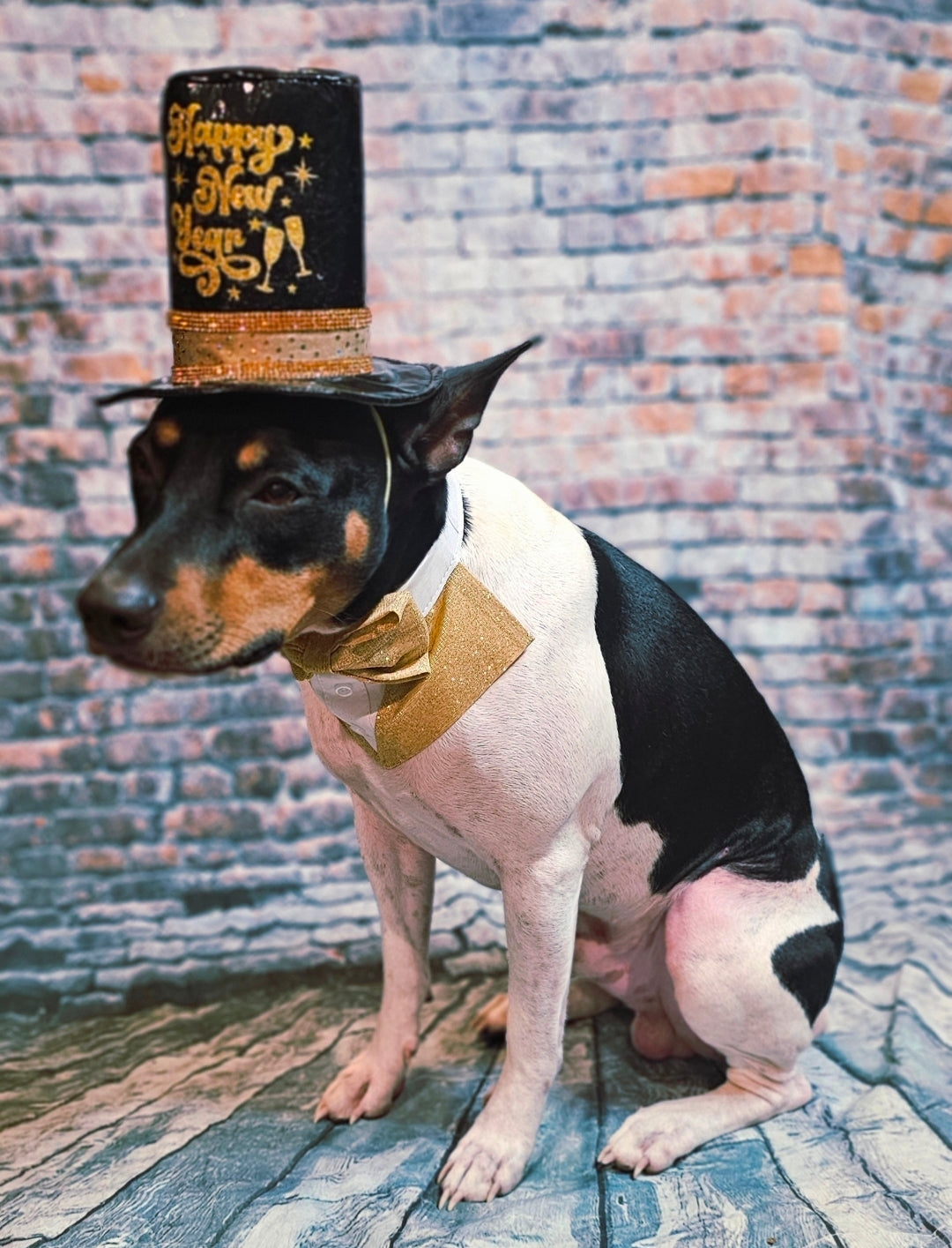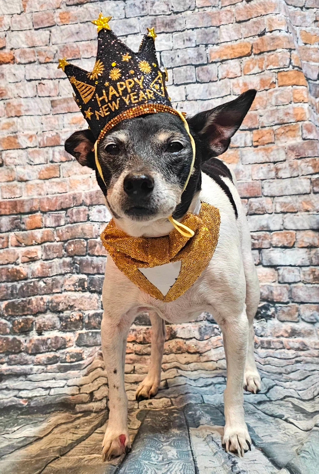 Ring in the new year with your furry friend in style. This festive pet ensemble features your choice of eye-catching Lurex glitter or shimmering sequin materials, perfect for holiday celebrations and special occasions. The coordinated hat and bandanna tuxedo design elevates your pet's look with sophisticated flair. Select the hat-only, or crown-only option if you prefer a streamlined accessory. An ideal choice for pet owners seeking polished, celebratory wear for their companions.