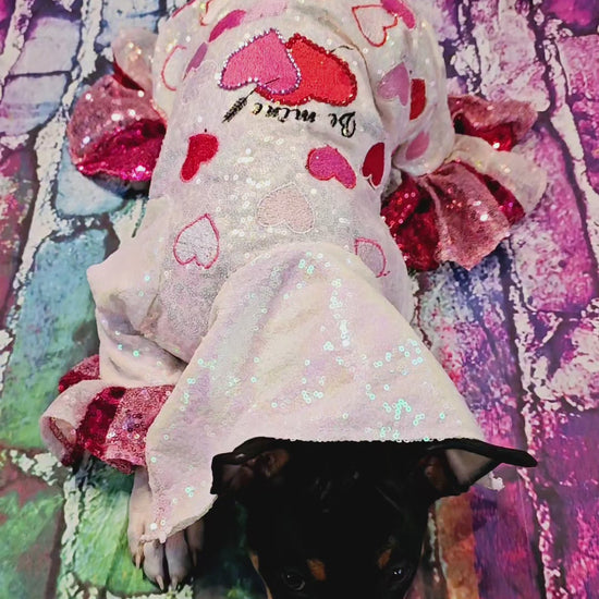 Valentine Pet body suit, Sequin valentine pet suit, Be mine valentine pet